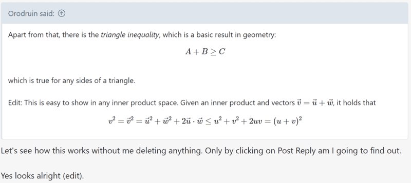 Now I press "Post reply". The intent is to then mouse over a line containing ##\LaTeX## in this post, press quote and see what shows up when I "Insert quotes".