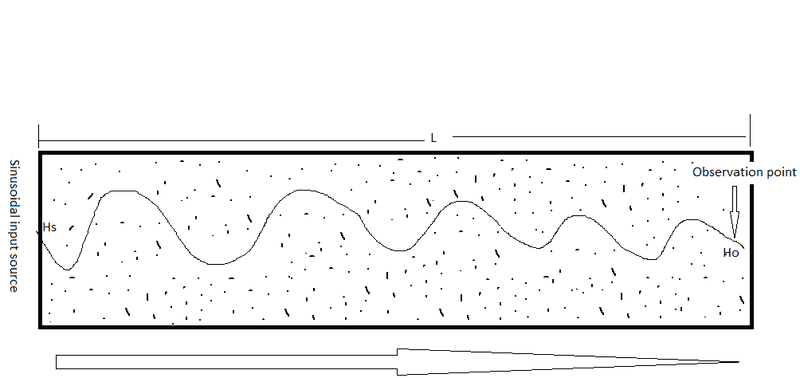 There is a heat source at left side and heat is observed at point Ho after a distance L from the source. If we consider only heat transfer through conduction then this problem can be modeled by diffusion/heat conduction equation.