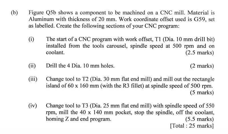 The discussion focuses on programming G-codes for CNC milling, specifically addressing the creation of island and pocket features with fillets. The user seeks assistance in writing G-codes for parts (iii) and (iv) of a component after attempting parts (i) and (ii). The conversation highlights the importance of demonstrating prior work to receive effective guidance, emphasizing the need for clarity in CNC programming tasks.