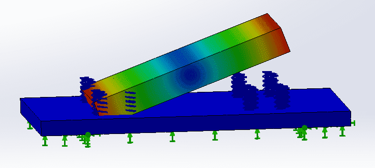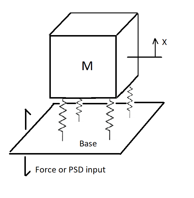 The system is a 4 springs and 1 mass on a vibrating base, the system has a low natural frequencies (the mode shapes are: 4, 4.2, 5, 5.5, 8, 11, 11.2 Hz). When excited with a random vibration like in the attached PSD curve below.