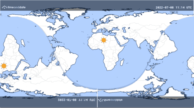 Hello, Thank you. I think I may have miscommunicated. It's not the percentage of people I was calculating, but the surface area of the Earth. When I took the sunlit map from Time and Date and did the math, I surpisingly found that on that time and day, annually, a total of 69.35% of Earth's total surface area to be receiving some degree of sunlight. This doesn't make sense. Are you willing and able to double check my work? Thank you so much, kind regards. john.