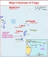 Edit/update - I corrected the location of the volcano with repsect to Nukuʻalofa on the island of Tongatapu, and I attached a map image of Tonga and its volcanoes (source: Smithsonian Institution).