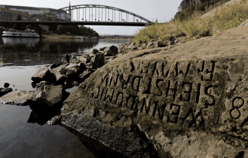 Carved into the side of a rock, the phrase emerged as water levels continue to drop in one European river, and the five-word translation delivers a warning from ancestors of what’s to come.