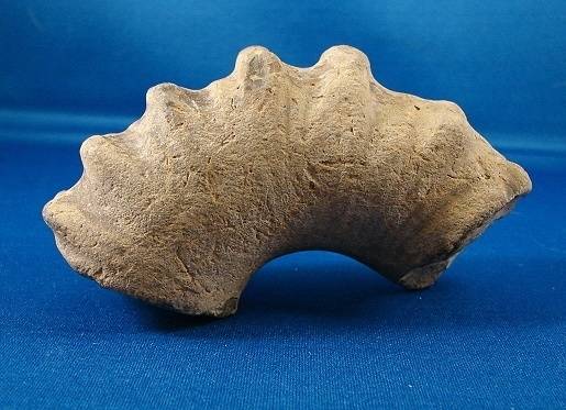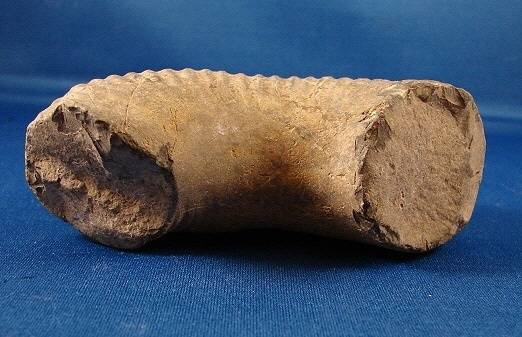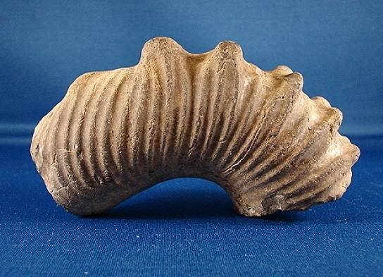 The fossil is 5 1/2" along outside curve and 1 3/8" in diameter. You can see in the photos light spots and those are very shiny, almost look like glass. The color in photos isn't accurate, the color is tan.