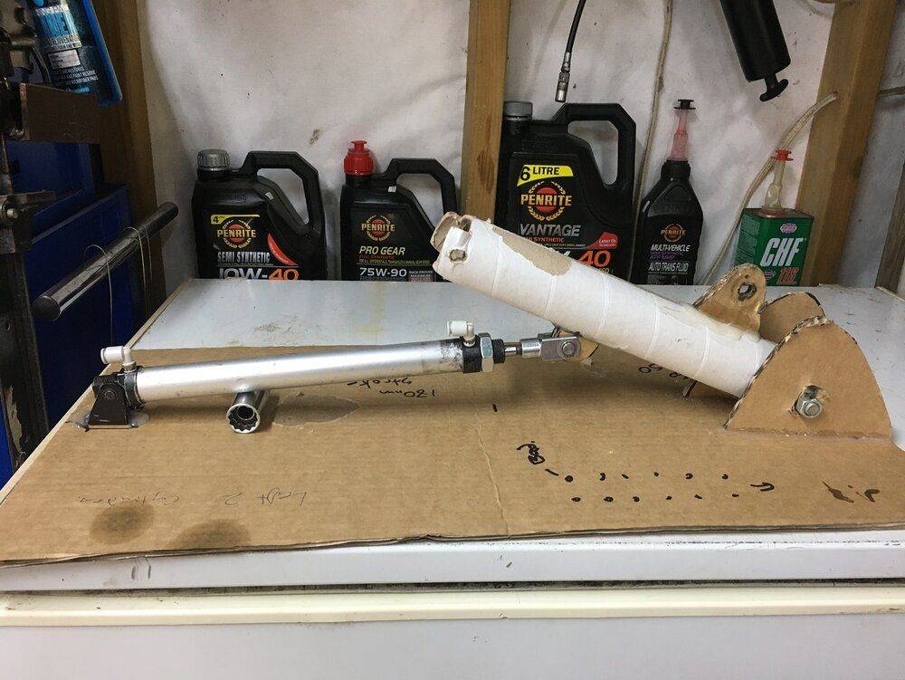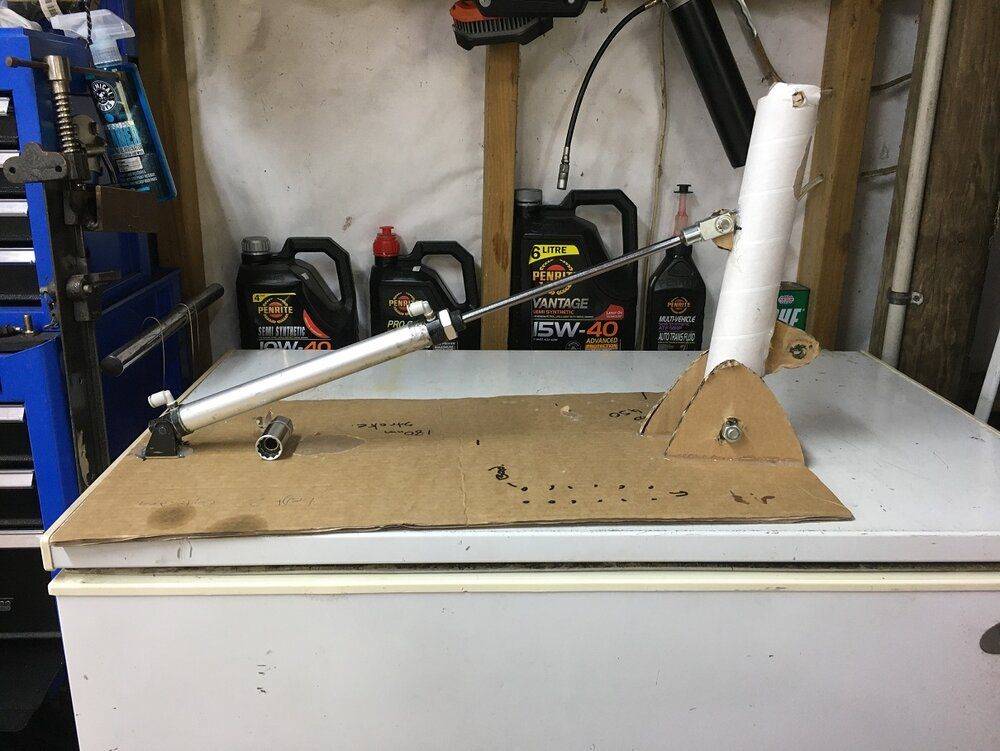 I have to push the jack a long way under the car to lift up the end. I want to make it easier... cheaper the better as usual. But I am looking at two hydraulic cylinders mounted under the ramps, one each side and use them to lower an arm with a wheel on the underside. This will lift up the ramps high enough to place the support frames under the ends.