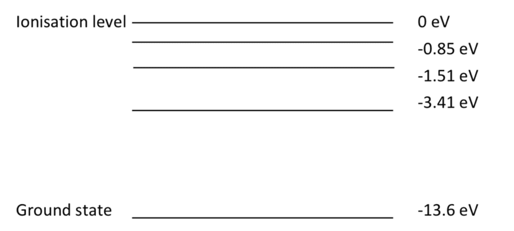 - Hello, below I have some questions concerning the energy levels of a hydrogen atom and its emission spectrum. I have attached the relevant diagrams from the question.