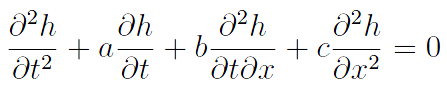 - One participant mentions the existence of wave-like solutions of the form ##h(x,t) = f(x - vt)## and separable solutions involving exponential and oscillatory components.