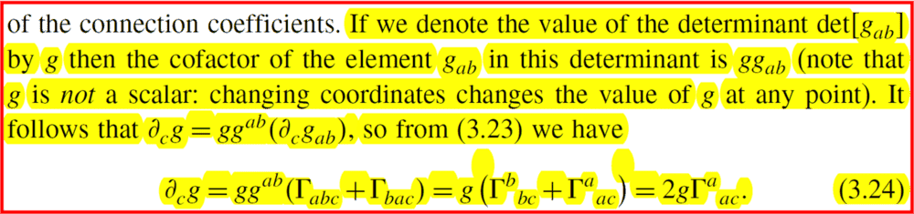 The determinant of the n-by-n matrix ##g_{\alpha\beta}## is given by: