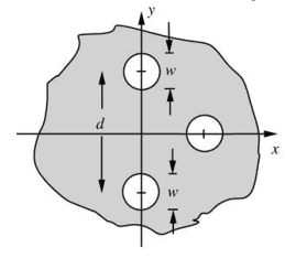 - The aperture is opaque with 3 circular holes, each with a diameter of w. The coordinates of the center of the circular apertures are: {0, d/2}, {0, -d/2}, {d/2, 0}.