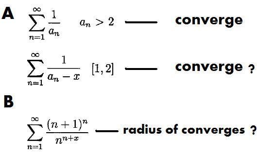 Dick said:For the first one, you are given the first series converges. That means a_n->infinity. Think comparison test. 1/(a_n-x)<1/(a_n-y) if x<y<a_n. How about choosing y=a_n/2?? Can you justify that? For the second one, write it as [(n+1)^n/n^n]*[1/n^z]. The first factor has a limit. What is it?