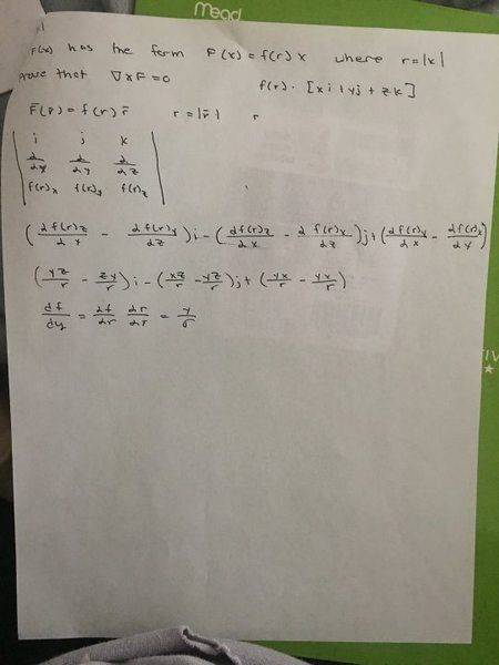The problem involves proving that the curl of a vector field, specifically in the form F(x) = f(r)x where r = |x|, equals zero. Additionally, there is a question regarding the general form of the function f(r) under the condition that the divergence of F is also zero.