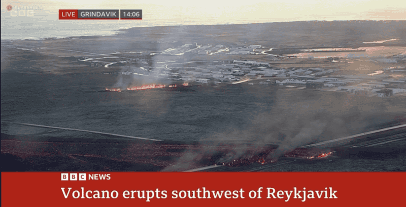 Ref: https://en.vedur.is/about-imo/news/a-seismic-swarm-started-north-of-grindavik-last-nightAn eruptionstarted at 7:57 UTC