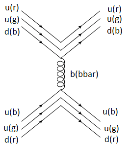 - One participant proposes a specific process involving a proton and gluon exchange, questioning how to demonstrate that certain configurations can maintain color singlet states while others cannot.