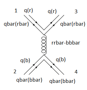 At short distances QCD is asymptotically free. This means that the q-q interaction gets weaker at short inter-quark distances, and at [itex]r \sim 0.1 \mbox{fm}[/itex] the lowest order (one-gluon exchange) diagrams dominate. So, it is not unreasonable to expect a Coulomb-like potential analogous to that arising from one-photon exchange in QED. Indeed, we can show that [tex]\langle q\bar{q}|V(r) |q\bar{q}\rangle_{\mbox{singlet}} = -\frac{4}{3} \frac{\alpha_{s}}{r} , \ \ \ r \sim 0.1 \mbox{fm} .[/tex] The factor [itex]4/3[/itex] arises from summing the colour factors of all possible lowest-order [itex]q_{i}\bar{q}_{k} \to q_{j}\bar{q}_{l}[/itex] partonic processes in the colour singlet meson. The colour factor for such partoinc processes arises when we calculate the Feynman amplitude [itex]\mathcal{M}\left( q_{i}\bar{q}_{k} \to q_{j}\bar{q}_{l} \right)[/itex]. It is defined by [tex]C \left( q_{i}\bar{q}_{k} \to q_{j}\bar{q}_{l} \right) = \left( \frac{\lambda^{a}}{2}\right)_{ji} \left( \frac{\lambda^{a}}{2}\right)_{kl} .[/tex] Now, group theory comes to the rescue because of the following identity [tex]\left( \frac{\lambda^{a}}{2}\right)_{ji} \left( \frac{\lambda^{a}}{2}\right)_{kl} = \frac{1}{2} \left( \delta_{jl} \delta_{ik} - \frac{1}{3}\delta_{ji}\delta_{kl} \right) .[/tex] So, you find the following colour factors [tex]C(x\bar{x} \to x\bar{x}) = \frac{1}{3}, \ \ \ x = r, g, b ,[/tex] [tex]C(x\bar{x} \to y\bar{y}) = \frac{1}{2} , \ \ \ x \neq y ,[/tex] [tex]C(x\bar{y} \to x\bar{y}) = - \frac{1}{6} \ \ \ x \neq y .[/tex]