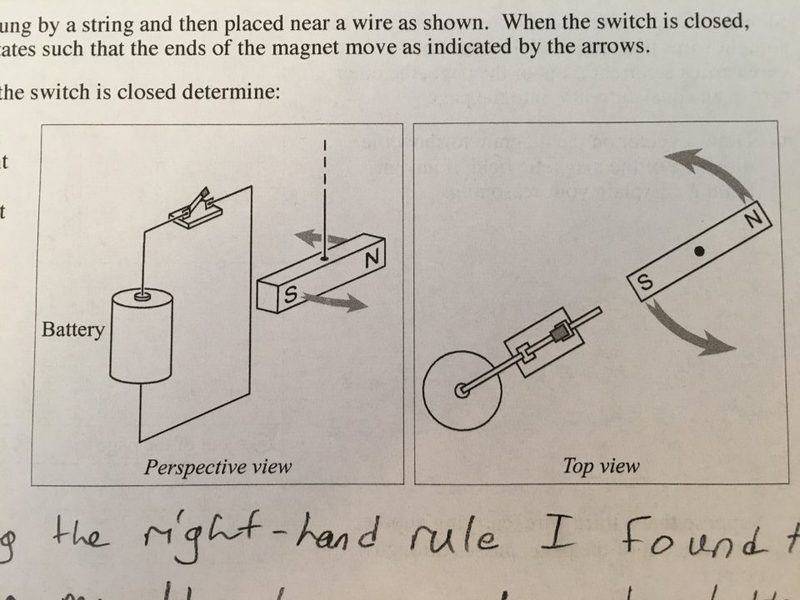 1. At the instant the switch is closed determine the direction of the net force exerted by the magnet on the wire segment at the instant that the magnet is in the position shown. Explain.