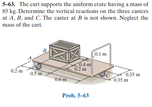 1) In exercise 6.87, the joint at C is a pin joint whereas in exercise 5.63 the joints at the casters are rollers. I have solved these two problems check the answers, the assumptions I made about the joints are all correct. But the problem is they are all essentially a wheel with a PIN going through its center, how do I tell them apart? If they're not the same, please point out the difference.
