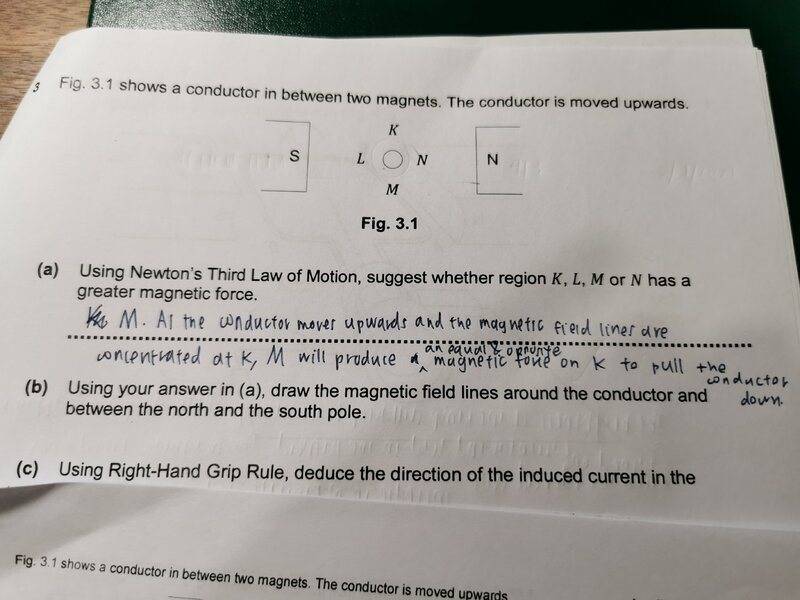The discussion revolves around identifying which region of a conductor experiences the greater magnetic force, specifically in the context of Newton's third law of motion. Participants are examining the implications of the conductor's movement and its interaction with magnetic fields.