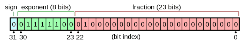 ## \epsilon = \frac{1}{2^{23}} = 2^{-23} = 1,19 * 10^{-7} ## (roughly)