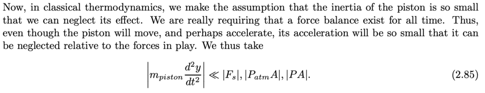 For instance, if the pressure of the gas inside a frictionless piston far exceeds that of the external gas, surely it would be detrimental to ignore the acceleration?