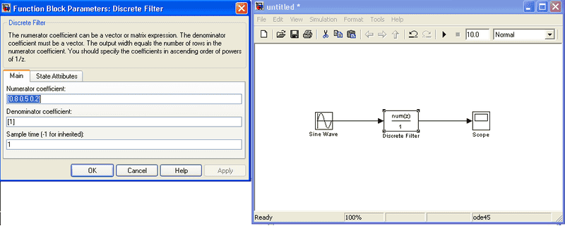 To implement this function i tried the block called discrete filter. I have connected them in series respectively.