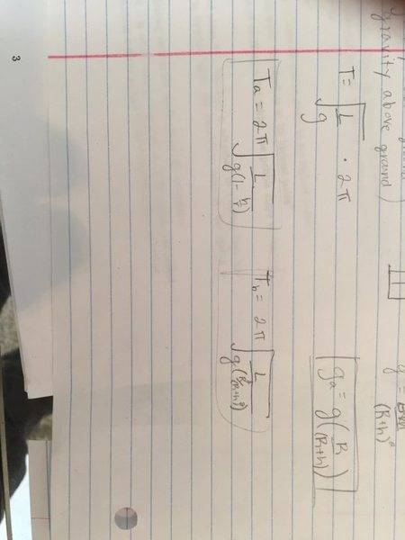 g2 = GMm/(Re+h) is for the pendulum above ground. Plugging into the period equation gives T = 2π (Re + h) √(L/GMm)