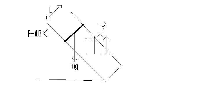 suppose a rod of mass m and resistance R,is going down the inclined surface in the uniform magnetic field( see figure).