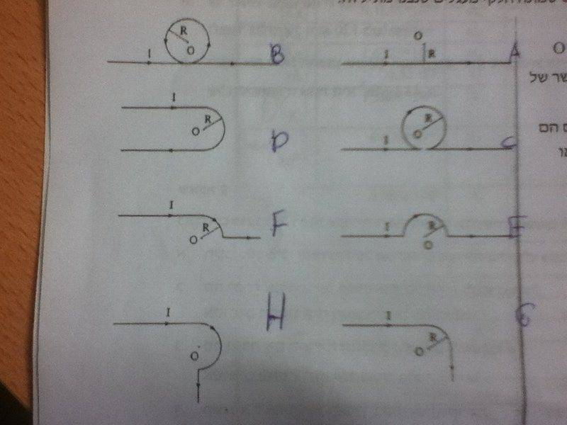 H: μI/2R + 2μI/8piR + μI/2R Inwards