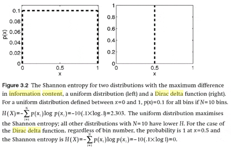 I understand that the Dirac delta function can be taken as a distribution. And that one can calculate the Shannon entropy or information content of any distribution. So what is the information content of the Dirac delta function? I think it is probably identically zero, but I'd like to see the proof of it. I could not find anything specific on-line about this. So any help would be appreciated. Thanks.
