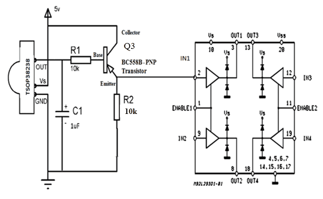 I made the following circuit for 38kHz infrared receiver TSOP38238 to increase the detection range above 10 meters. i was quite happy to see the range is more than 20 meters with TSAL 6100 LED. but i am facing a problem, my circuit works like a relay circuit. i have to wave my hand in front of receiver or transmitter so it can detect. Any help will be appreciated. thanks