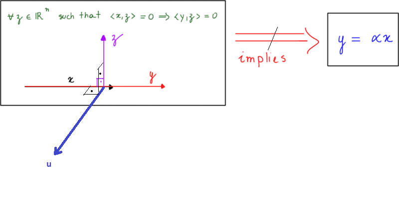 Let ##x,y \in \mathbb{R^n}## not null vectors. If for all ##z \in \mathbb{R^n}## that is orthogonal to ##x## we have that ##z## is also orthogonal to ##y##, prove that ##x## and ##y## are multiple of each other.