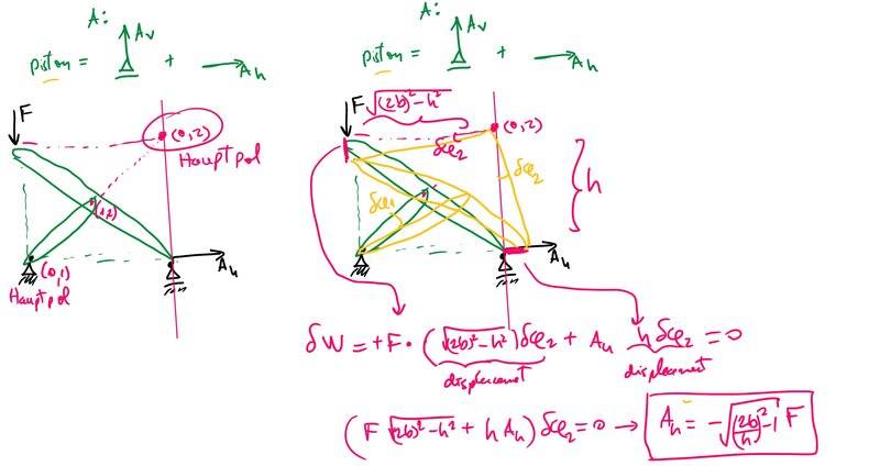 - Principle of VIRTUAL WORK + Polplan (Instantaneous centers of rotations and "Nebenpole" if there's a translation for that). I need to justify all virtual displacements with this Polplan
