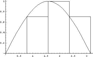 $$A\approx \sin(0)*( \pi/4)+ \sin( \pi/4)*( \pi/4)+ \sin( \pi/2)*( \pi/4)+ \sin(3 \pi/4)*( \pi/4)$$