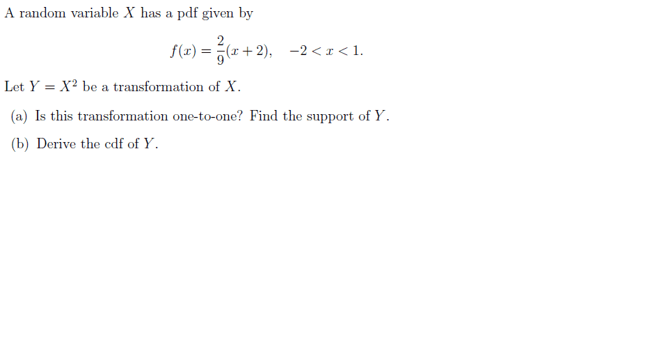 = P(-sqrt(y) ≤ X ≤ sqrt(y) )When -2<x<-1, it's a one-to-one transformation, 1< y<4