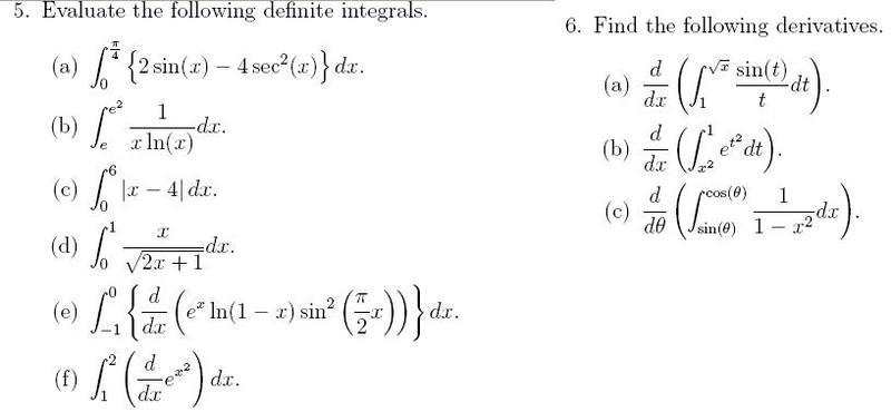 5e&f.) I'm not even sure what this is asking. It looks like "the integral of the derivative", which, according to my notes, is f(x)+C, but... help? I'm not sure.