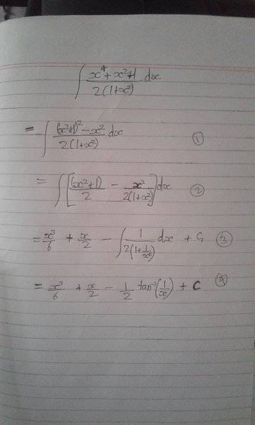 The discussion focuses on the integration of the function [(x^4+x^2+1)/2(1+x^2)]dx. A critical error identified in the integration process was the incorrect application of the arctangent function, specifically stating that ∫1/(1+x^(-2))dx does not equal tan^(-1)(1/x). The correct approach involves splitting the original expression into two parts: (x^4 + x^2)/(2(1 + x^2)) and 1/(2(1 + x^2)). This method simplifies the integration process and leads to the correct solution.