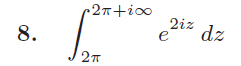 The discussion focuses on evaluating line integrals in the complex plane using the substitution of complex variables. The integral is approached by treating the variable z as a real number and substituting limits accordingly, specifically from z = 2π to z = 2π + iy as y approaches infinity. Participants clarify the method of direct integration and the interpretation of complex bounds, emphasizing the importance of simplifying the problem to avoid confusion.
