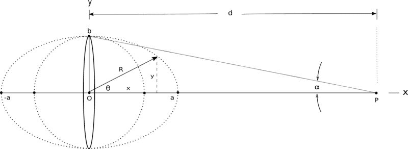 But suppose I have a sphere of radius "r" made of an infinite number of infinitely small discs at that same distance away, the height "a" of the surface of the sphere (or discs for that matter) above the x-axis is :