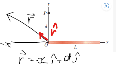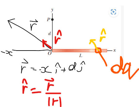 However, how dose ## \hat r = \frac {-x\hat i + d\hat j} {\sqrt {x^2 + d^2}}##?