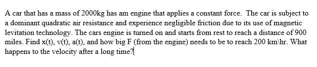 (Fc-cv'^2)/m = dv' / dt' * using the primes to differentiate between v and v' during integration