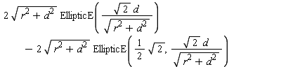 Lastly, I used wolframe alfa to calculate the part under integration, here is what I got.( I used r=1 and d=1/2 r).