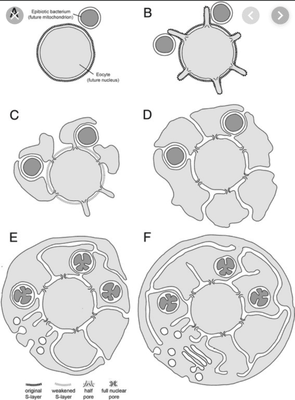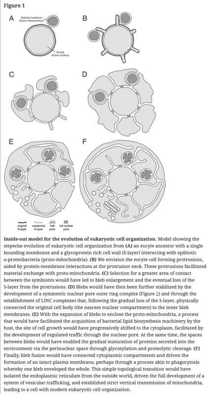 - A paper, published in 2014, proposed how many eukaryotic cell features originated. It involves the elaboration of cell protrusions that have been observed recently in relatives of the eukaryotic host cell.