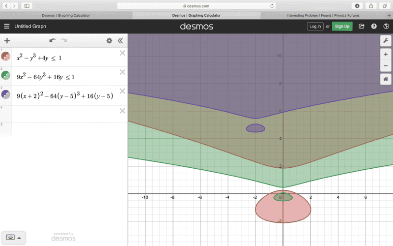 - $$ h(x,y) = x^2 -y^3 +4y \leq 1$$