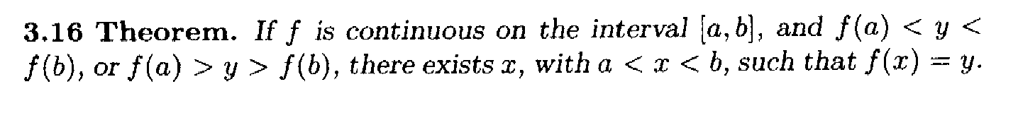 " ... ... But $$f(b) \gt y$$ implies (since $$f$$ is continuous at $$b$$) that there exists $$\delta \gt 0$$ such that $$f(t) \gt y$$ for all $$t$$ with $$b - \delta \lt t \leq b$$. ... ... "My question is as follows: