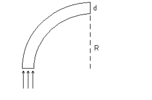 3. A fiber optic cable is essentially a thin fiber of plastic with n = 1.46, surrounded by a protective material with n = 1.32. The light can travel around a bend in the fiber if it can internally reflect inside the fiber. If the diameter of the fiber is d = 0.900 mm find the smallest inner radius of curvature, R, into which the fiber can be bent that will allow light that is initially traveling parallel to the fiber to remain inside the fiber.