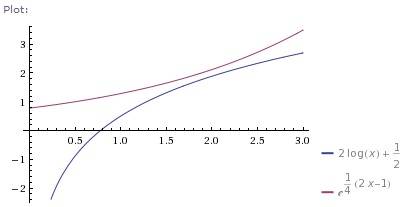 $\displaystyle g(a)=e^{\frac{2a-1}{2a}}-a=0$