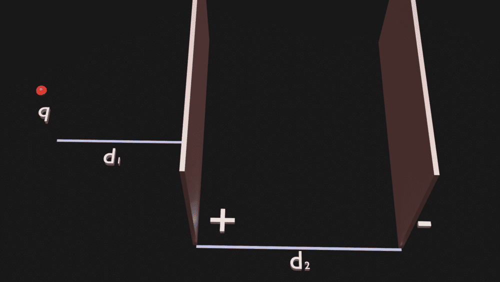 Then these ions encounter/cross an electric field which is oriented from B to A.