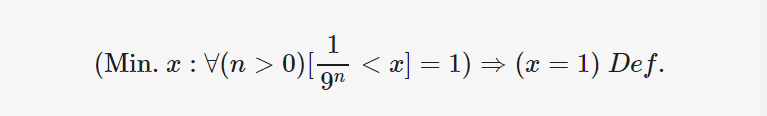 Let there be a number .999 repeated m times where m is a natural number, which is the smallest number less than 1.