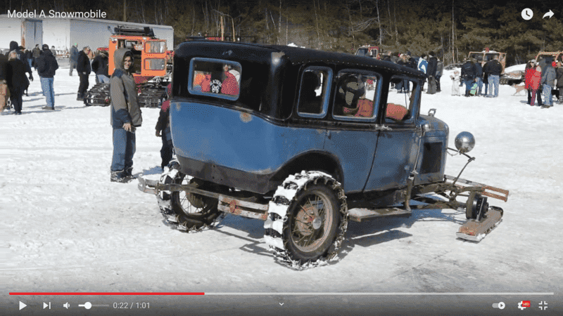 The discussion revolves around the effectiveness of a single-wheel track drive system for a Ford Model A snowmobile, specifically focusing on the practicality and performance of wrapping track pieces around the rear wheels. Participants explore various aspects of this setup, including traction, ground contact area, and comparisons to traditional track systems.