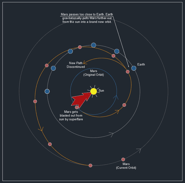 I'm examining if a massive superflare early in the solar systems history could be the explanation for the odd positions of certain planets and moons in our solar system (and their rotations). For this test, I've taken Mars as an example.