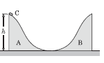 - Two identical frictionless slides A and B each of height h and mass M are placed on a horizontal frictionless floor. A small disc C of mass m much less than M is released on the top of the slide A. Find expressions for the speeds eventually acquired by both the slides when interaction of the slides with the bead ceases. (see fig. 1)